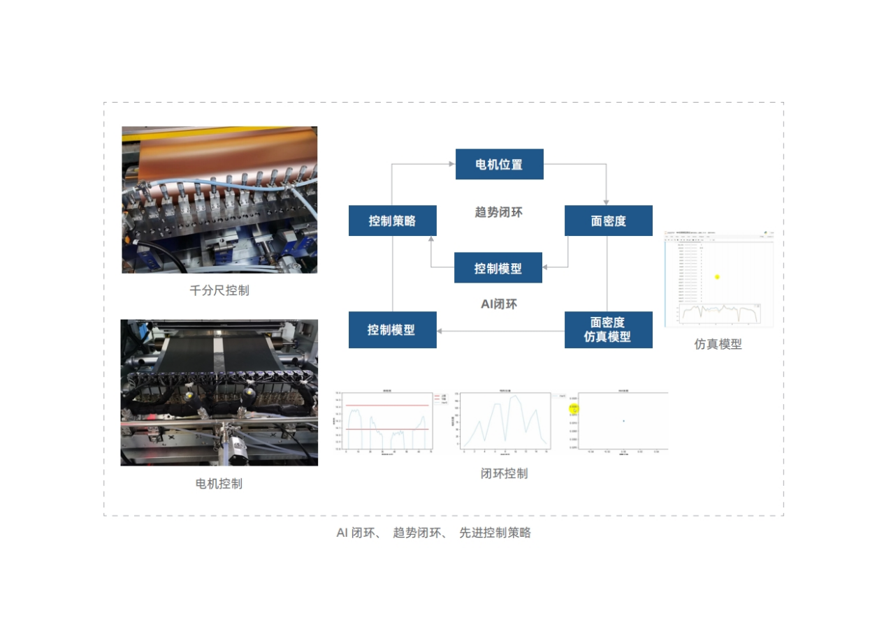 在生产过程中,AI实时监测面密度数据,自动调整T块位置,并基于反馈修正模型参数,实现动态优化。